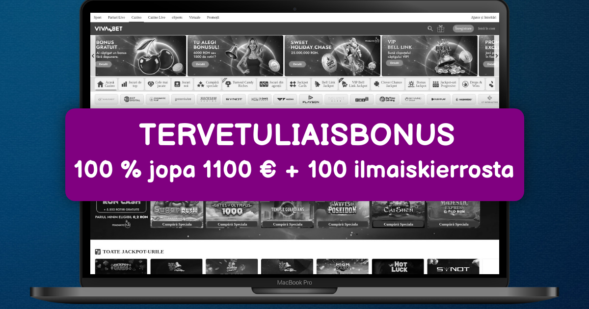 Vivabet Casino on dynaaminen nettikasino, joka on suunniteltu tarjoamaan pelaajille unohtumattomia elämyksiä. Me panostamme asiakastyytyväisyyteen, turvallisuuteen ja monipuolisiin peleihin. Yleiskatsauksessamme kerromme, miten olemme rakentaneet alustamme vastaamaan nykyaikaisten pelaajien tarpeisiin. Olitpa sitten kolikkopelien ystävä tai vedonlyönnin harrastaja, löydät meiltä kaiken tarvittavan.